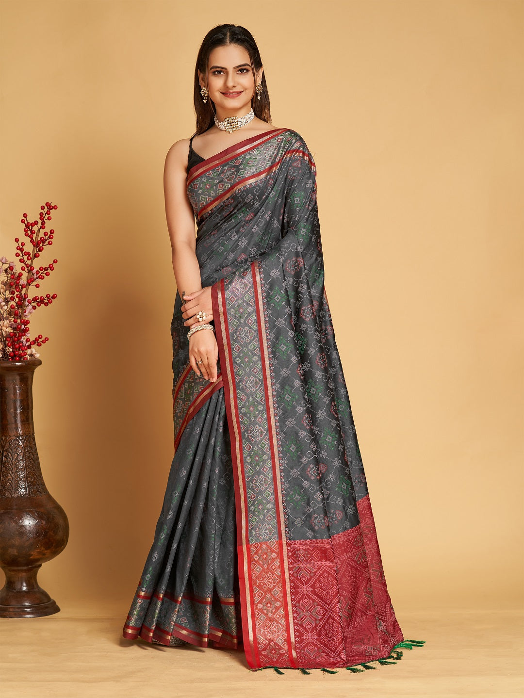 Make A Vibrant Statement With This Stunning Patola Saree Adorned With Intricate Geometric And Floral...